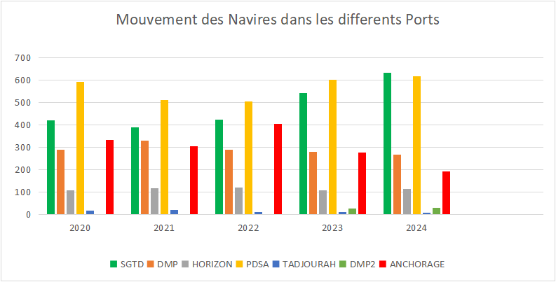 Mouvement des navires selon les ports ( Unité : Nombre )