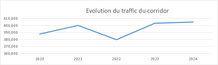 | Année | Mouvement des camions | Variation (%) | Tendance |